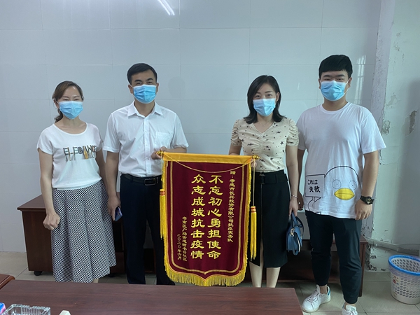 “我代表社區(qū)全體居民感謝貴公司3名黨員干部對(duì)本社區(qū)抗疫工作的幫助”。 6月29日下午,孝南區(qū)廣場(chǎng)街道曬書臺(tái)社區(qū)書記李丹,將錦旗送到孝感市長興投資有限公司時(shí)動(dòng)情地說。